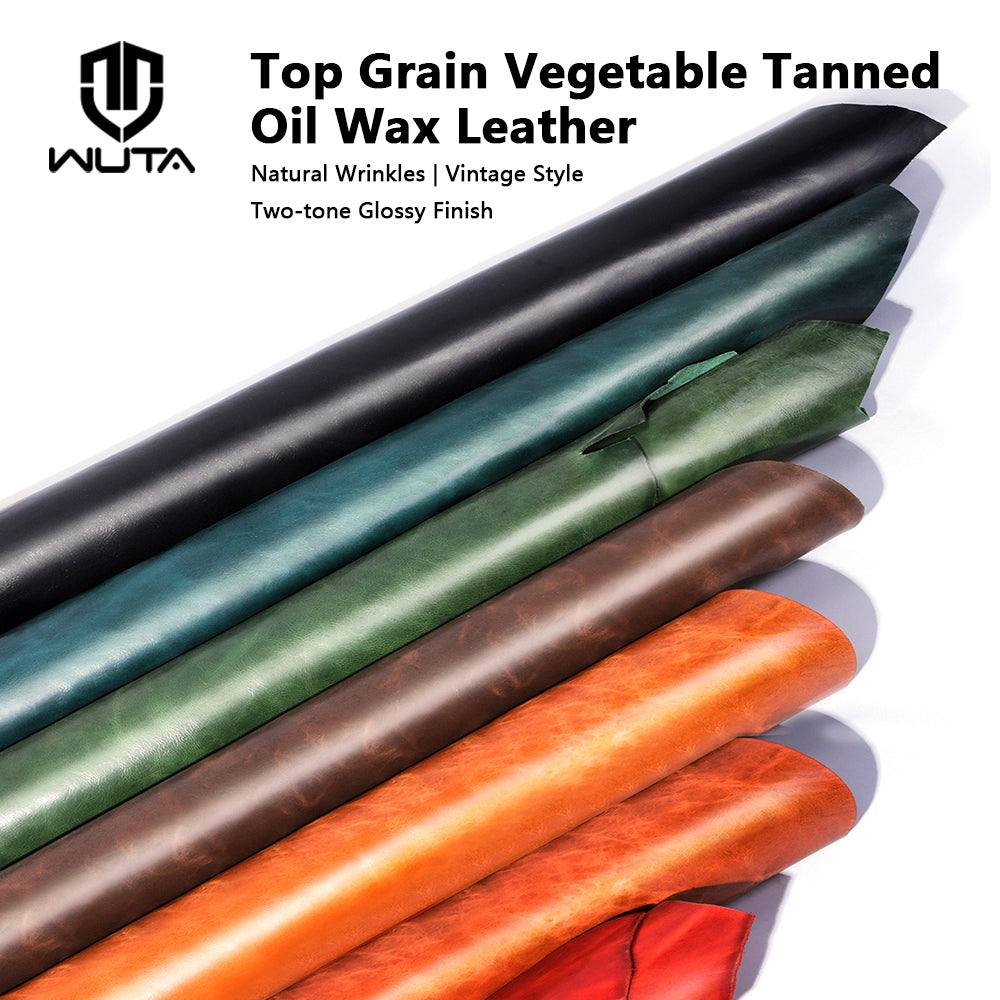 WUTA Oil Waxed Vegetable Tanned Leather Top Grain Genuine Cowhide Leather Sheet DIY Leathercraft Pre-Cut 1-5 Sq.ft Irregular