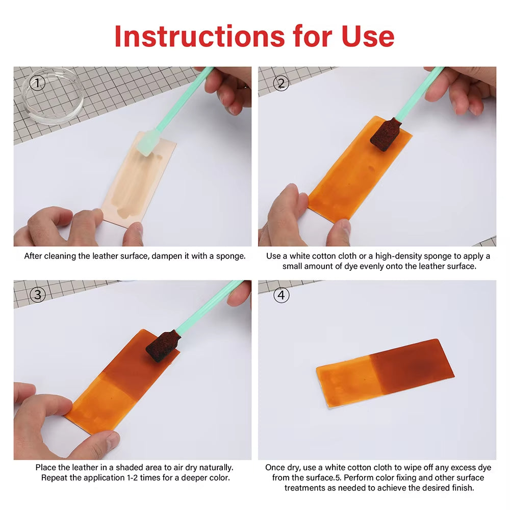 Note: Different leather colors will have different dyeing effects. Please test on a small area before dyeing. (Due to light or environmental factors, there may be slight color differences in the pictures. Please understand.)