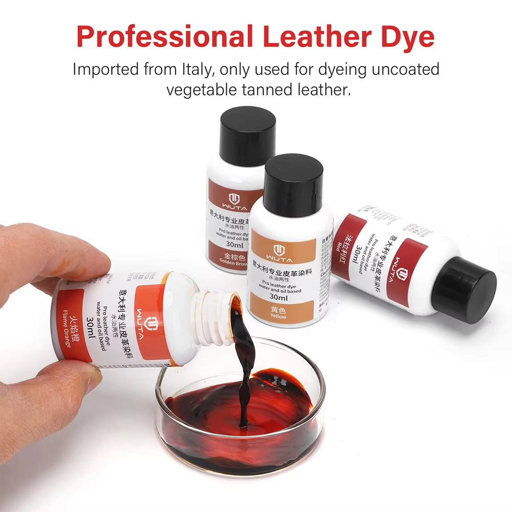 WUTA 30ml Italy Pro Leather Dye Water & oil Based Penetrating,Permanent Dye DIY Coloring Uncoated Leather for Shoe Boot Belt Bag