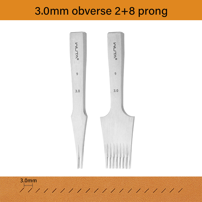 Meißel sind mit obversen Zinken oder umgekehrten Zinken. Wenn man die Löcher herabschaut, die durch einen obversen Meißel gestanzt werden, dann geht das Loch von links nach rechts in den Welch. Löcher, die durch umgekehrte Meißel gestanzt wurden, von links nach rechts, es geht ldquodownrdquo. Dies soll den höheren Bedarf beim Stanzen und Heften erfüllen. Darüber hinaus können Sie mit dieser zwei Arten von Richtung auf beiden Seiten eines Leders Loch lochen.