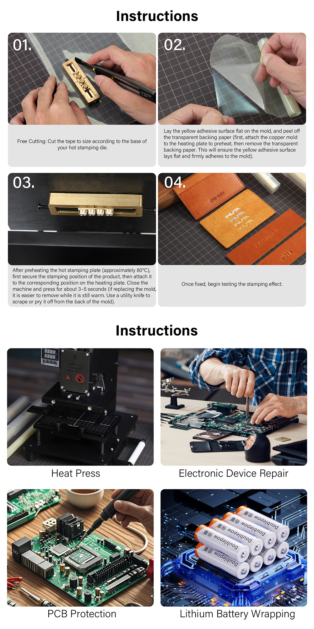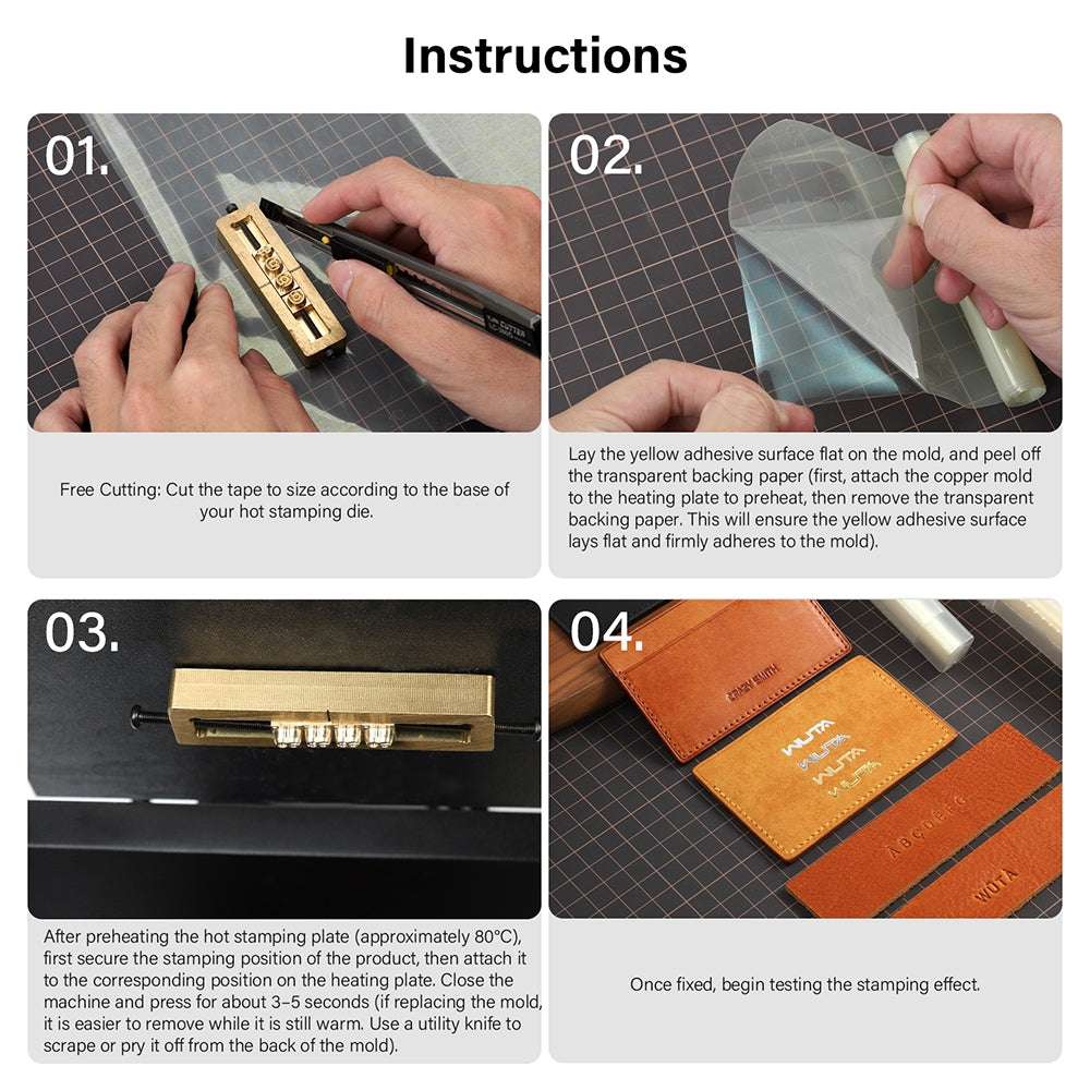 1.Free Cutting: Cut the tape to size according to the base of your hot stamping die.