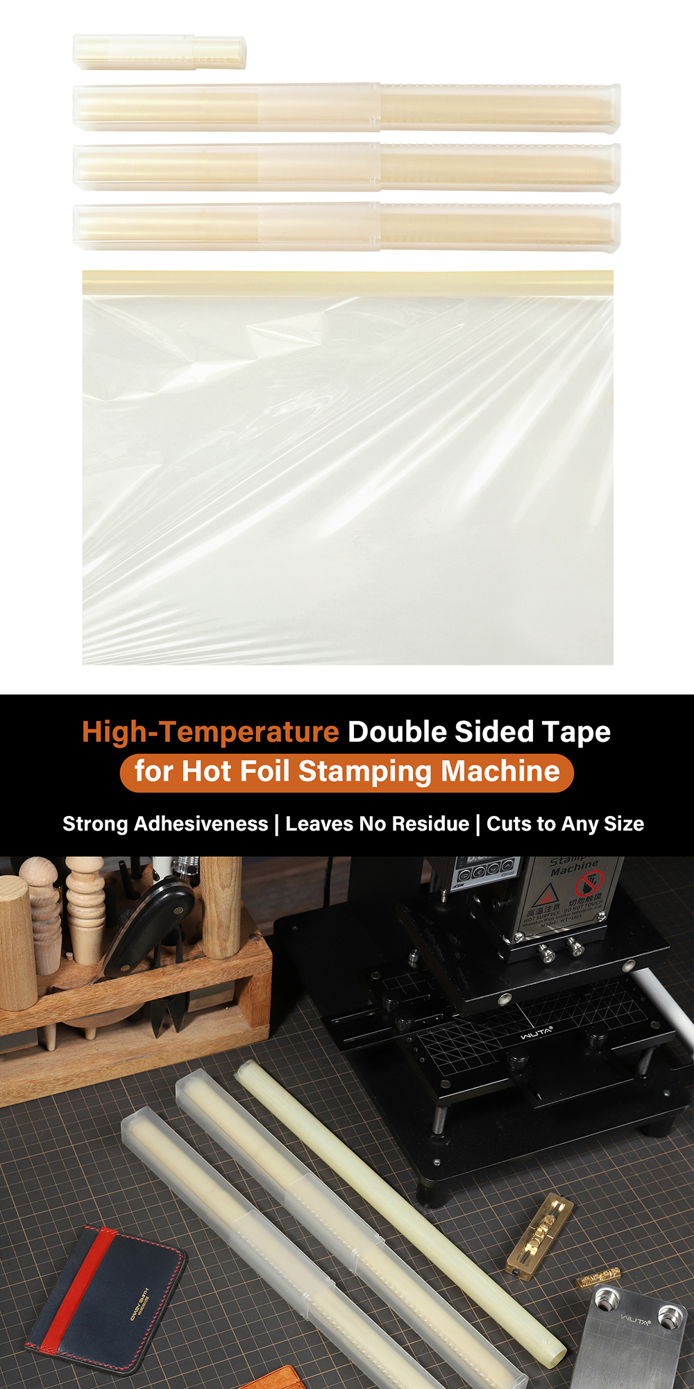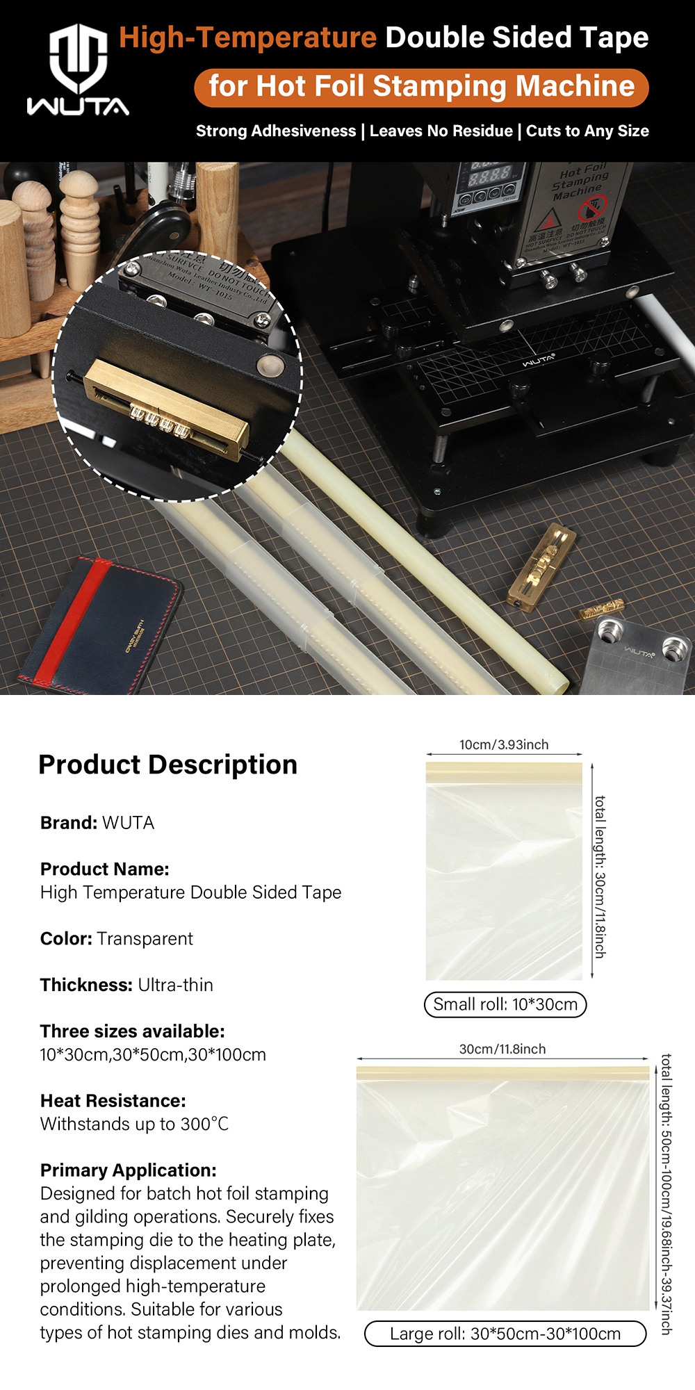 WUTA Resistant High Temperature Double Sided Tape for Hot Foil Stamping Machine Strong Adhesiveness Ultra-thin Transparent Dual-side Tapes