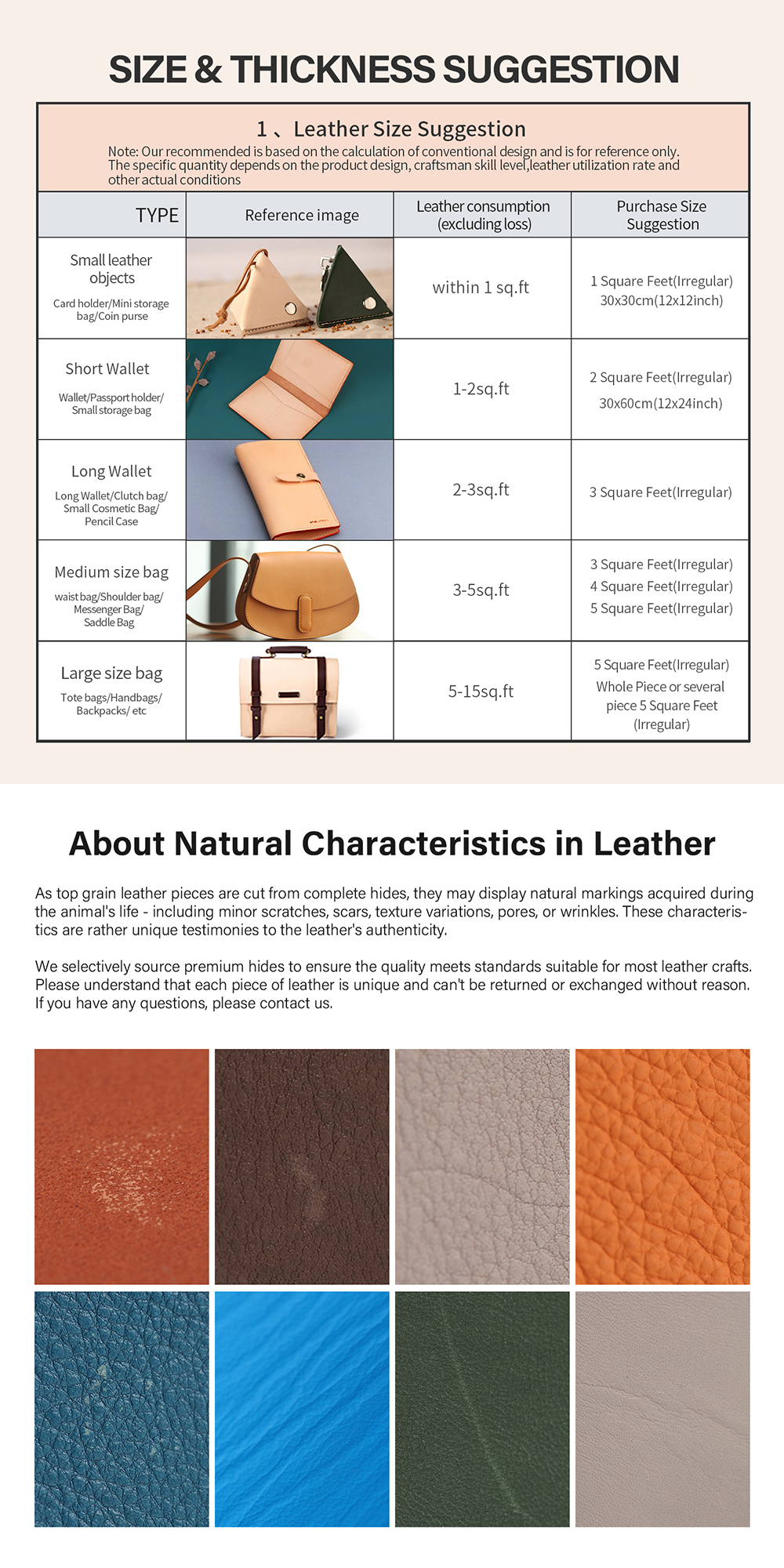 Free Skiving Service: Available for leather ≤40cm wide and ≥0.8mm thick. Please note that all skived items are final and cannot be returned or exchanged! (If no specific thickness is requested, we will send the product with its original thickness by default. thx)