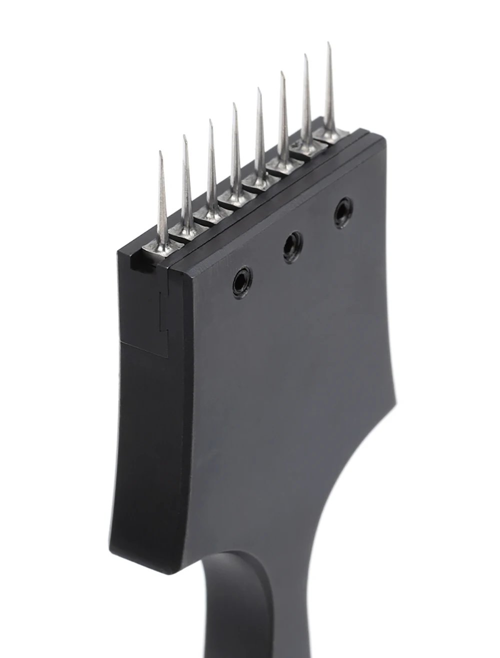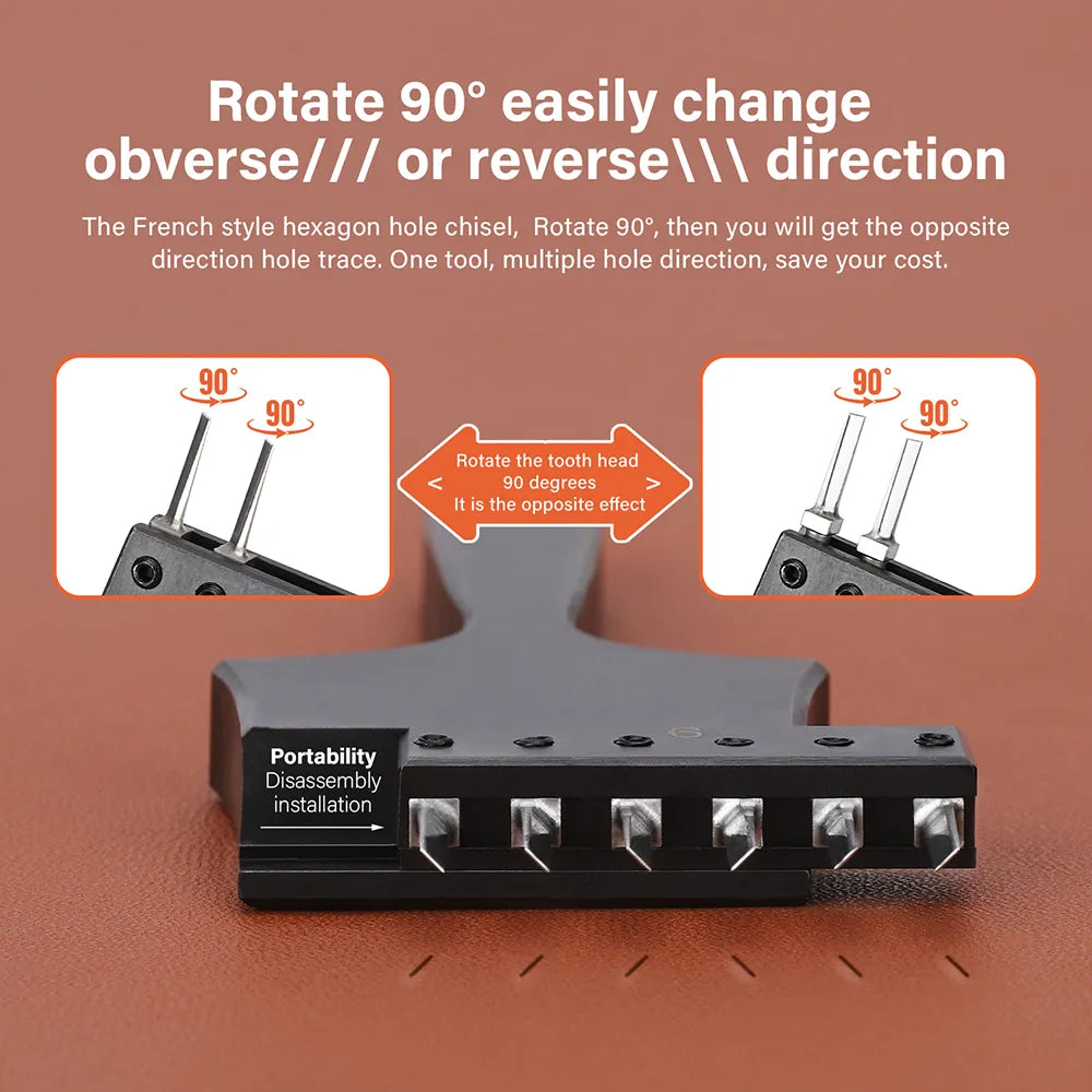 Mortise-and-tenon joint design, one handle for multiple uses: Through the adapter and different tooth types, the handle can be used to create different hole spacing and hole shapes. that is total 3/3.38/3.85/4/5/6mm*6 hole types=36 variations.(depend on what you order)