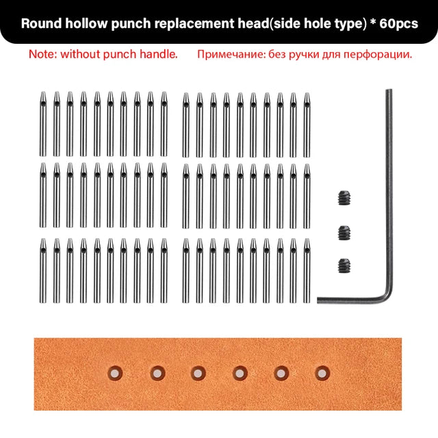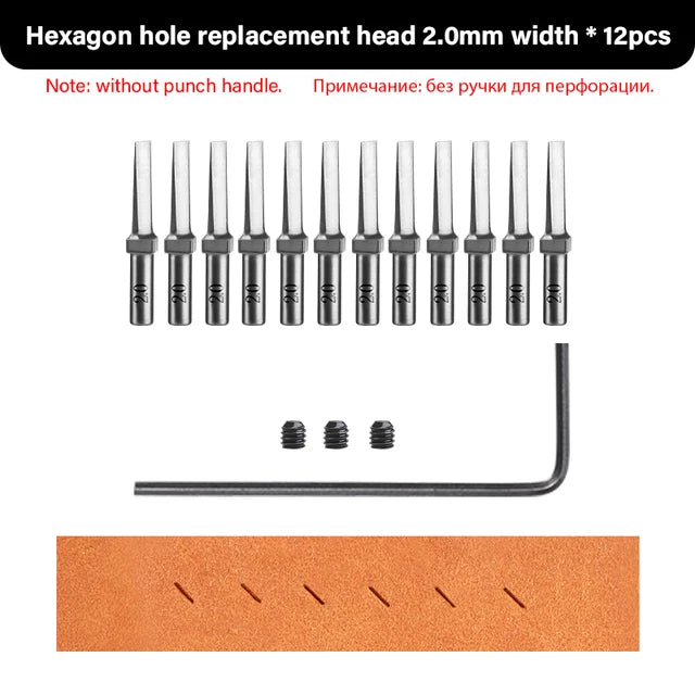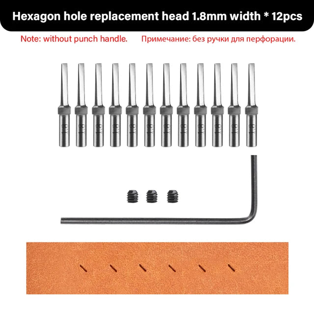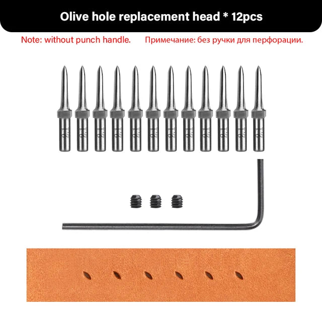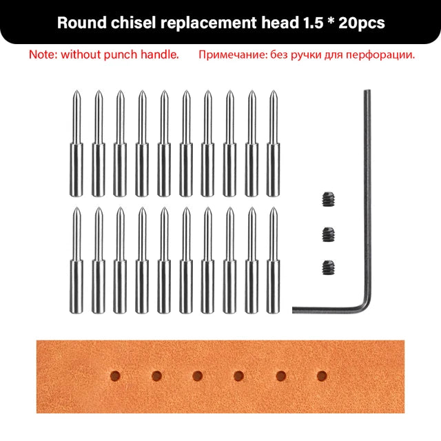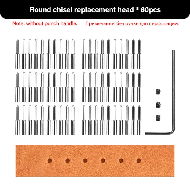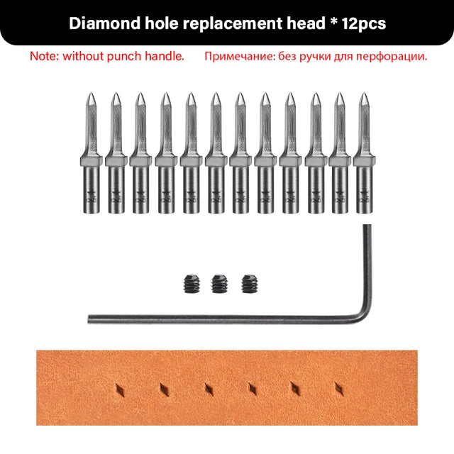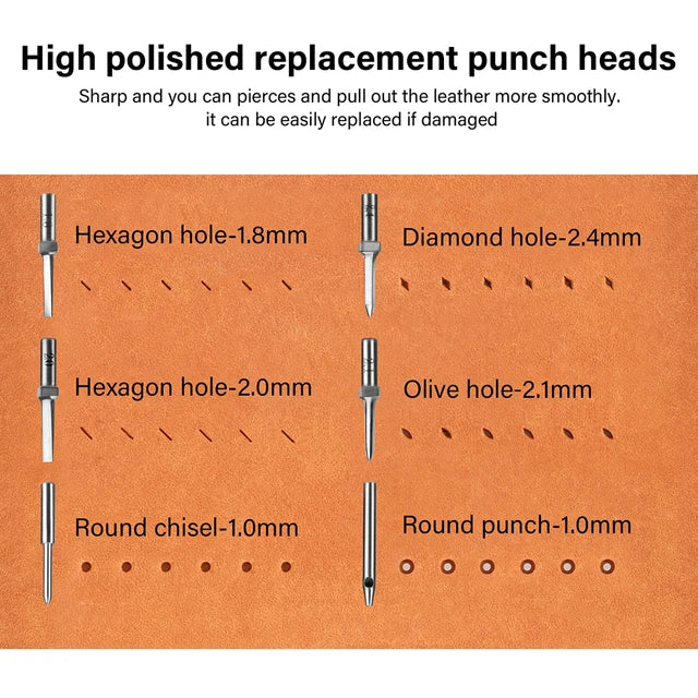 * Punch head accessories: High-polished replacement punch heads are removable and replaceable. Various hole types can be interchanged. You could easily interchange between French style hexagon hole, round chisel hole, round punch hole, diamond hole, and olive hole.  If the teeth are damaged after use, they can be replaced without changing the handle, which can save costs.