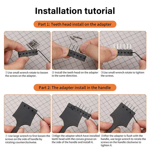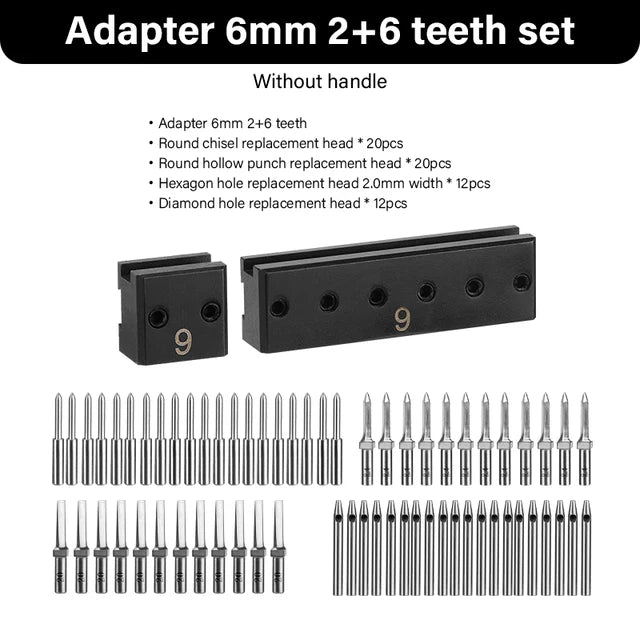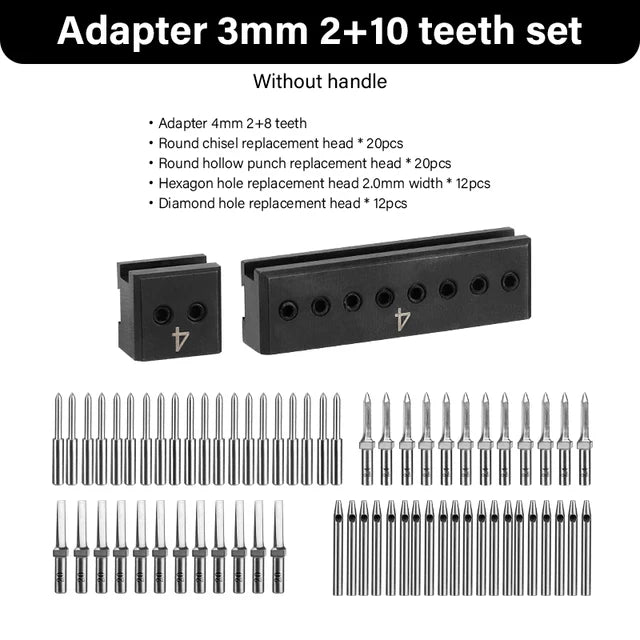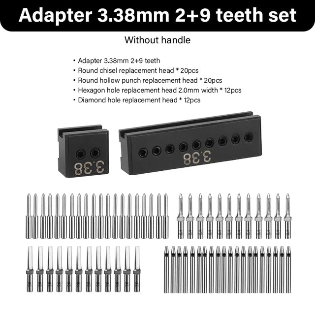 Through the adapter and different types of teeth, one handle can be used to make different hole spacing and hole shapes, which can be reused and save costs. Choose what you want now...