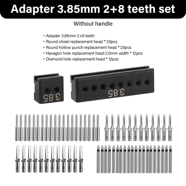 Those are professional tools; the handle, adapter, and different shape punch head accessories are sold separately; you need to combine different options to achieve various effects. We will ship according to the hole type and tooth spacing you choose. Please be careful when choosing options without handles.