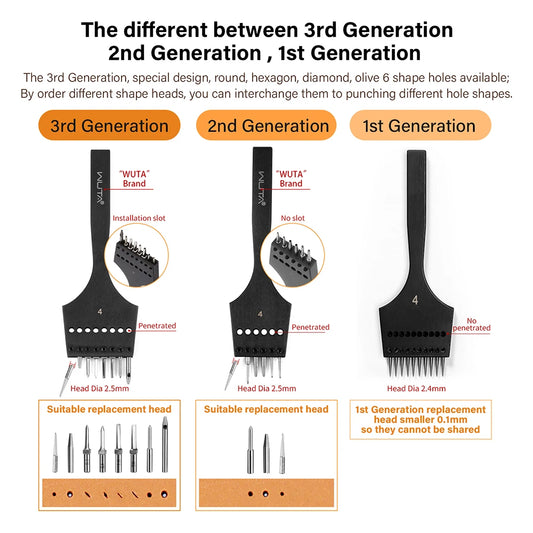 3rd Generation Multifunctional Interchangeable Circle Leather Hole Punch Tool | WUTA