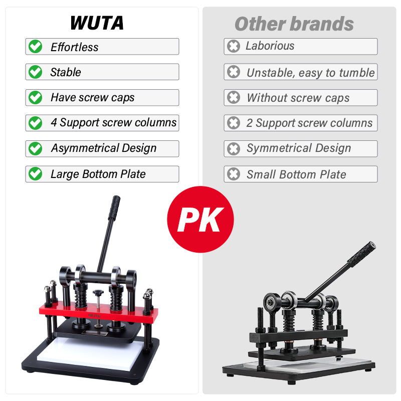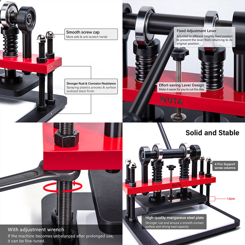 • 💎Double Guiding Shaft Design: Double Axis Guide shaft chrome-plated quenched High pressure, High hardness High precision, High Wear-resistant. Besides, double guide wheels and long compression rods can increase the pressure, Let you easily finish the die-cutting process.