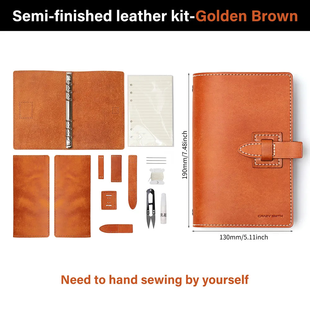 Designed for leathercraft lovers, this DIY Notebook Leather Kit by Wuta features high-quality full-grain cowhide with a smooth texture and long-lasting durability.