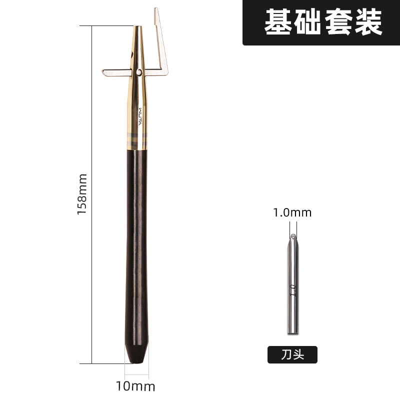 Material: M390 steel (cutter head), ebony (handle), brass (ferrule)