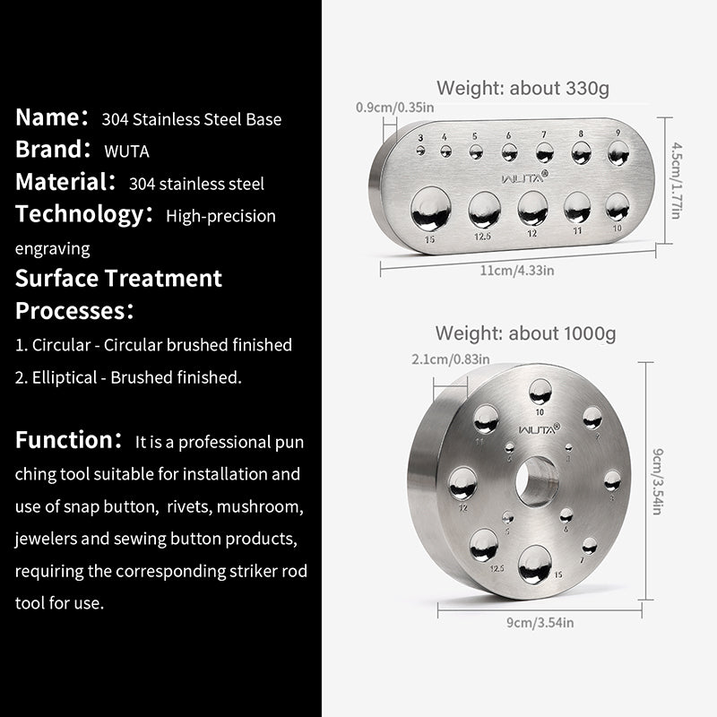 Snap Button Leather Craft Tools Rivet Setter Base 3/4/5/6/7/8/9/10/11/12/12.5/15mm | WUTA